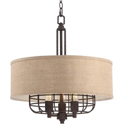 Franklin Iron Works Rust Cage Pendant Chandelier 20 Wide 3 Light Industrial Tan Burlap Drum Shade Dining Room House Foyer Kitchen Target